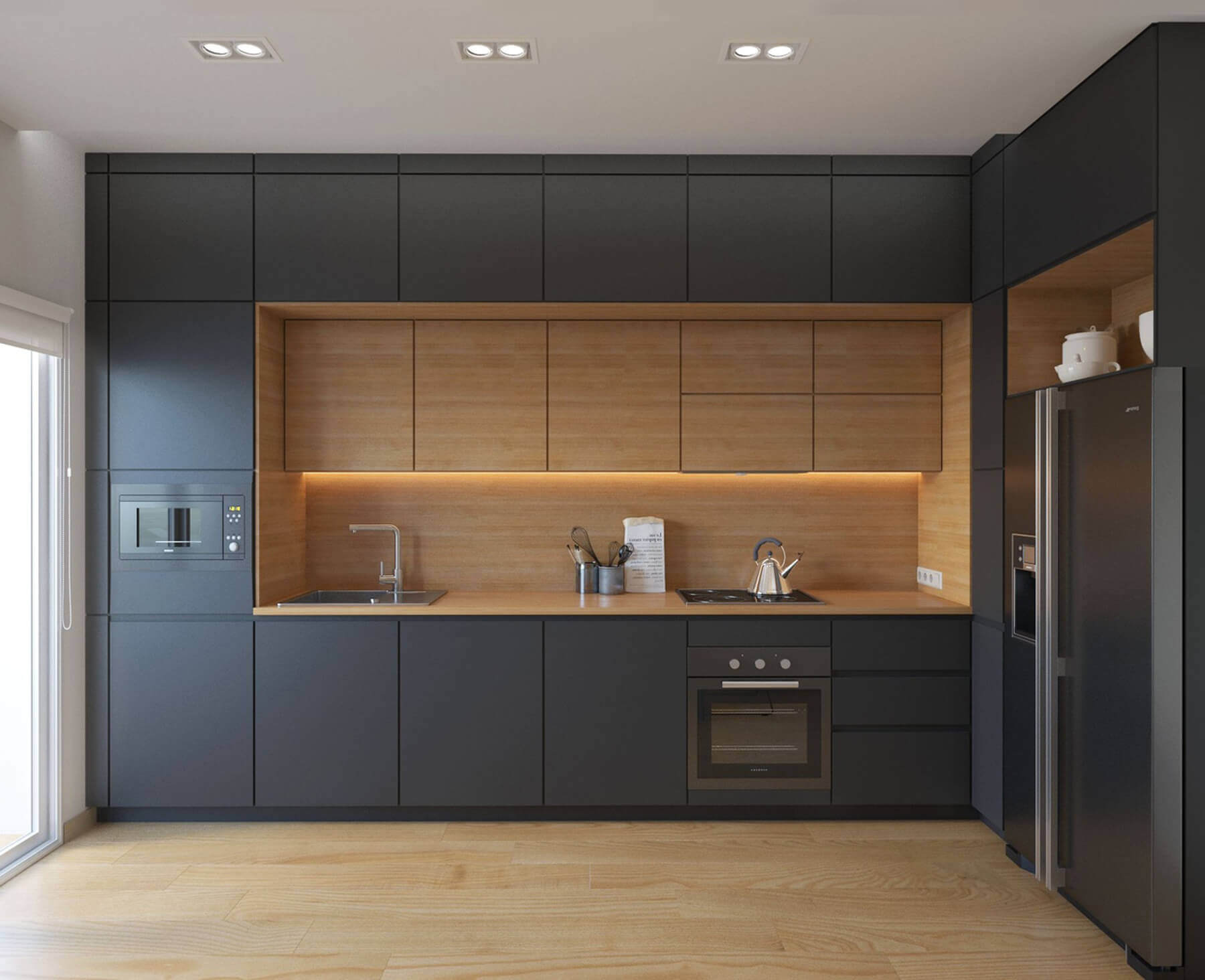 - Расположение кухонных приборов и техники.